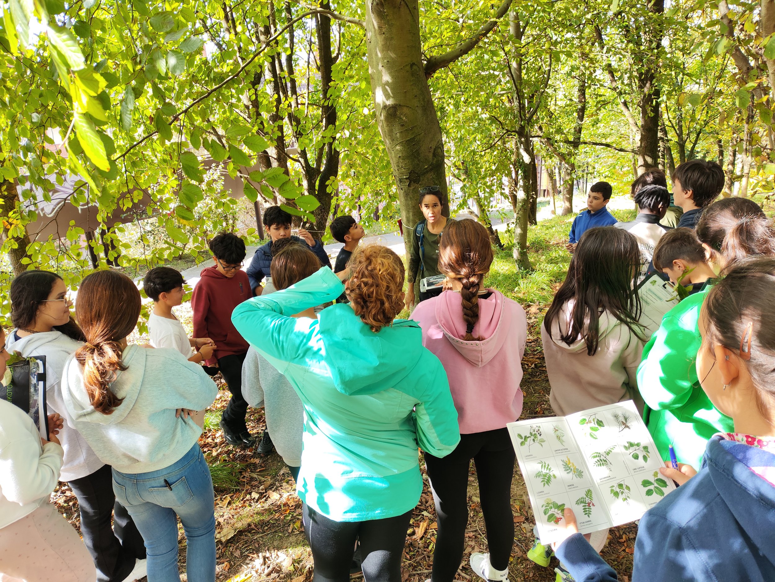 Cada grupo llevó un mapa, una carpeta y una clave dicotómica para su trabajo. Aprendieron a orientarse utilizando el mapa y, a través de la clave pudieron identificar cada especie. La experta de Aranzadi les explicó las características de cada árbol, sus curiosidades y el beneficio que le aportan al medio ambiente. Así, las alumnas y los alumnos recopilaron todos los datos para crear la ficha de identificación de cada árbol y también recogieron hojas para formar un herbario.