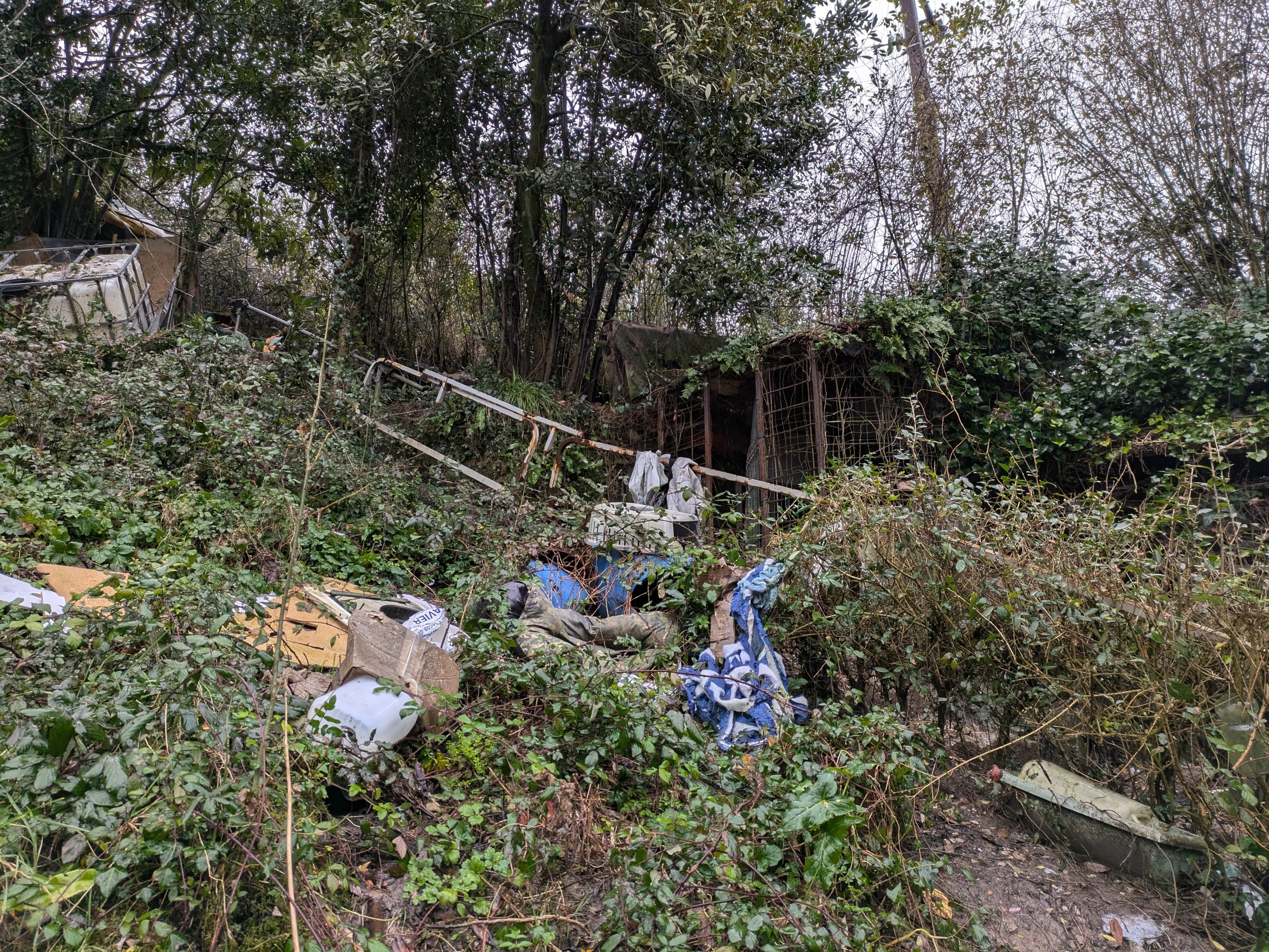 Ya están en marcha las labores de limpieza de otras dos chabolas abandonadas y de un vertido de residuos en el parque de Altamira.