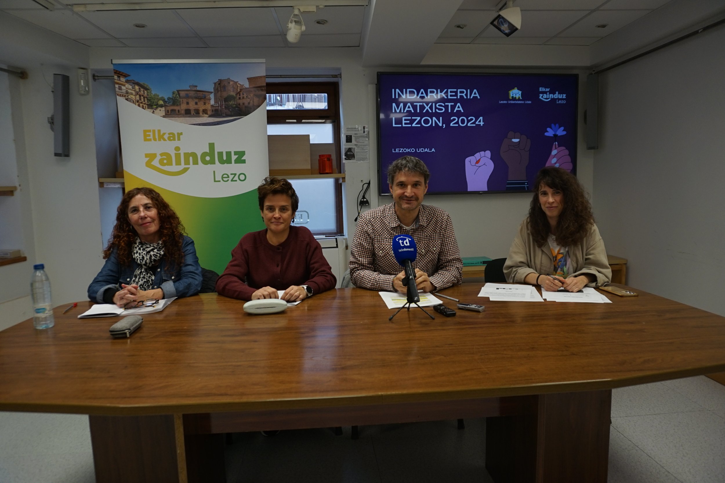Todos los años el Ayuntamiento de Lezo elabora un informe sobre violencia machista para analizar los datos del municipio. El alcalde de Lezo, Mikel Arruti, la concejala de Igualdad, Eneritz Arruti, la técnica de Igualdad, Ainhoa Irazu, y la responsable de Servicios Sociales, Dami Muñoz, han comparecido hoy para dar a conocer algunos datos.